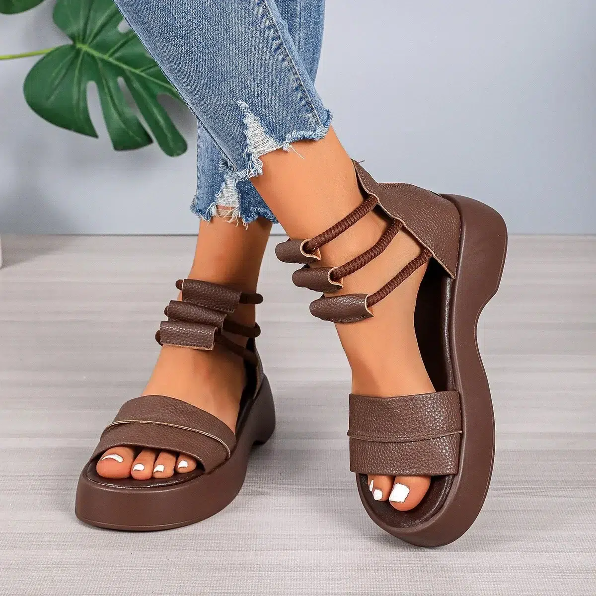 L’utilisation du Cuir PU assure une qualité exceptionnelle, une longue durabilité et une résistance aux intempéries. Avec leur allure moderne, ces sandales s’adaptent parfaitement à tous les styles vestimentaires, sublimant votre élégance quotidienne avec une simplicité déconcertante.