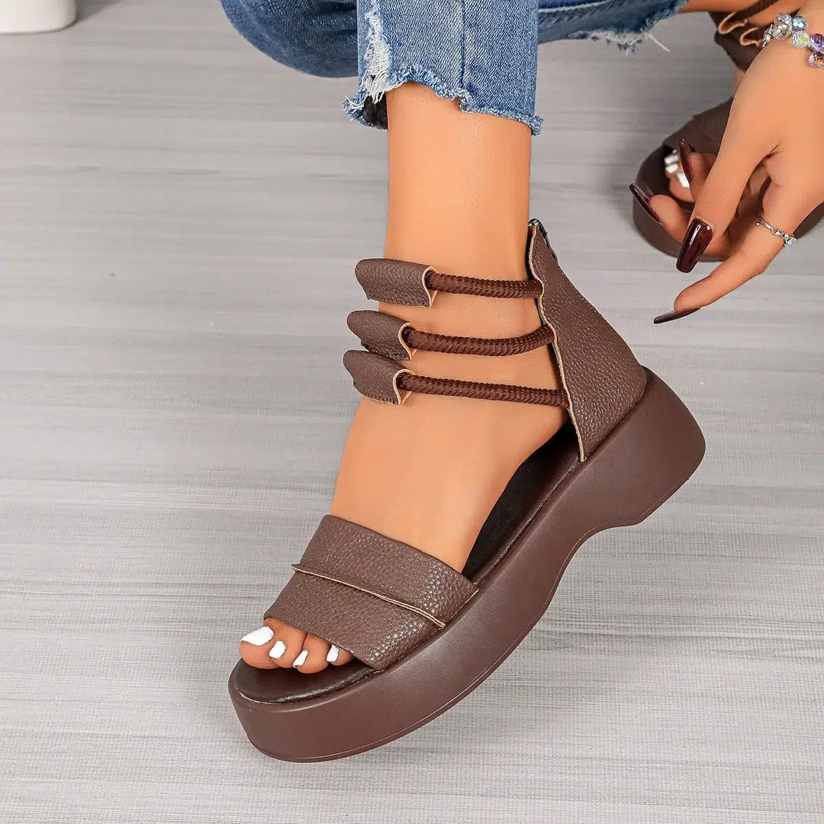 Les Sandales Plateformes en Cuir PU sont le fruit d’une conception minutieuse et réfléchie.
